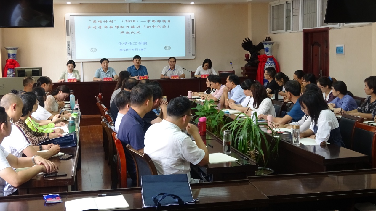 918日上午,太阳成tyc122cc集团担的“国培计划(2020中西部项目乡村青年教师助理培训(初中化学)开班仪式在实验楼407报告厅举行。太阳成tyc122cc集团党委书记郭鹏、副经理骆定法等领导老师出席开班仪式。仪式由太阳成tyc122cc集团国培计划培训班班主任沈久明老师主持。