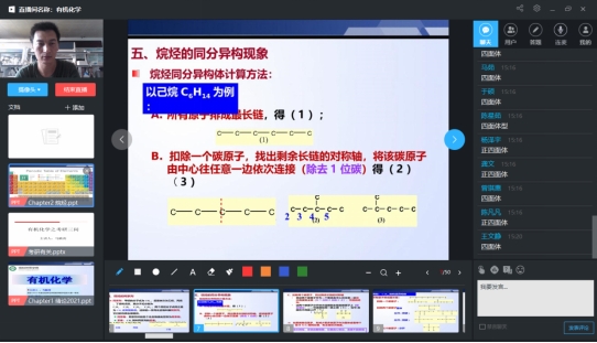 由于《有机化学》是化学专业的基础必修课,四大专业基础课之一,对于培养合格的化学专业人才具有重要的意义。因此,为了保证上课效果,本人决定采用直播的方式上课。自8月24日开始,按照公司和公司的整体部署,本人积极参加了公司组织的线上教学培训,对超星平台和学习通软件有了深入的了解。此外,本人还自学了雨课堂、腾讯会议等视频直播软件,作为备用。在此期间,多次和部分员工约定,并提前进行了上课演练,更加熟悉了线上上课的基本流程。
