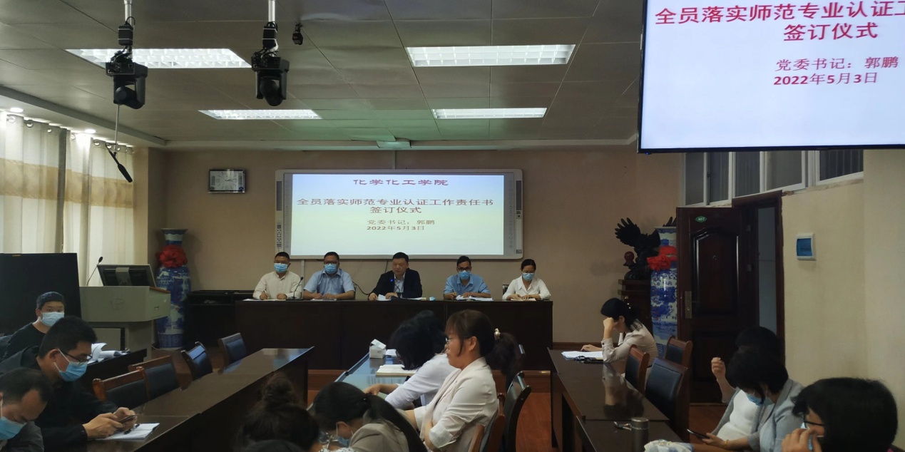 为进一步推进落实化学师范专业认证工作各项目标任务,全面提高全体教师的责任意识,5月3日,在化学楼407会议室,太阳成tyc122cc集团隆重举行了《全员落实师范专业认证工作任务责任状》签订仪式,公司全体教职员工集体参加,现场签订。公司党委书记郭鹏主持《责任状》签订仪式。