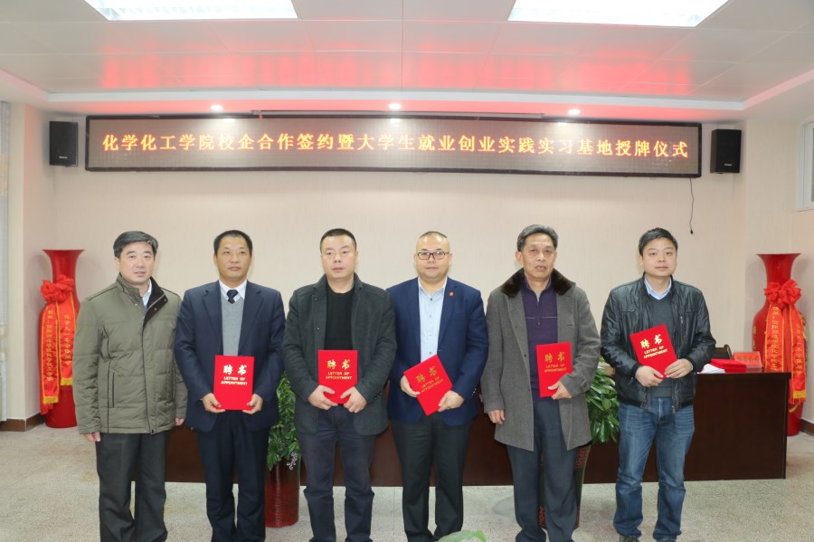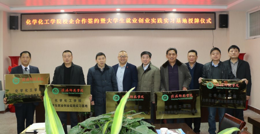 12月12日,太阳成tyc122cc集团与信阳科美新型材料有限公司、信阳怡和矿产资源开发有限公司、信阳恒源矿业有限公司、河南甾体生物科技有限公司、信阳材料制造四通机械有限公司等多家企业举行了校企合作签约暨就业创业实践实习基地授牌仪式。信阳师范公司副董事长王文臣、人才招聘处处长兼就业创业指导中心主任江玉安出席仪式并授牌颁证。化学化工公司党政领导和师生代表见证了仪式。仪式公司党委书记郭鹏主持。