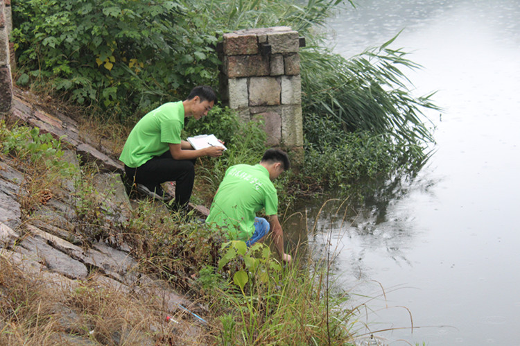 来到现场之后,领队老师对队员们进行了分组,每组由两名研究生和两名本科生组成,第一组负责采取并检测水样,第二组负责采取并检测土样,第三组负责做记录。分组结束后,队员们分别对郝堂上中下游的河水进行了取样检测,测试结果发现郝堂水质的PH值介于6.5和7之间,呈酸性。最后,队员们还将农田里采取的土壤样本带回实验室做进一步的检测,检测结果后期将反馈给村委会,以期对郝堂进一步的建设提供参考。