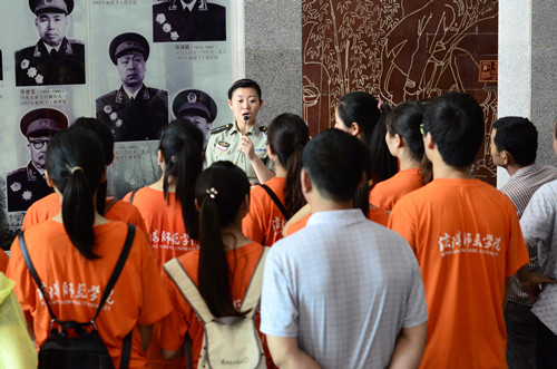 在讲解员的带领下,全体师生对纪念馆进行参观。展厅按时间顺序共分为“大别风雷,星火燎原”、“红军摇篮,将军故乡”、“红色苏区,共铸辉煌”、“红色土地,艰苦卓越”、 “江淮抗战,中流砥柱”、“中原突围,铁流千里”、“千里跃进,伟大壮举”七个部分,再现了党创建以来革命斗争的艰辛及鄂豫皖革命老区的峥嵘岁月,使实践队员们重温了红色革命历史。在各展厅,战争用品、烈士遗物及文献资料等实物的陈列,引得志愿者们驻足瞻仰,深切感受革命先烈们英勇顽强、奋勇拼搏的革命气概以及他们抛头颅、洒热血、不怕流血牺牲的大无畏精神。参观结束后,队员们纷纷表示受益匪浅,将时刻牢记革命先烈乐于吃苦、不畏艰难的精神,奋发图强、勇敢上进,将革命传统发扬光大,为实现中国梦贡献自己的一份力量。
