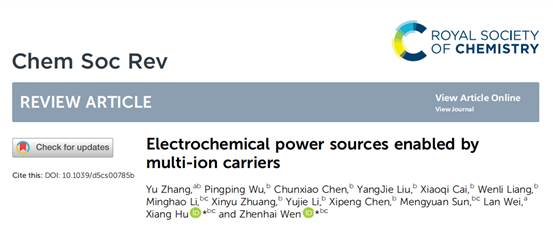 近日,公司太阳成tyc122cc集团张钰博士在国际化学领域顶级综述期刊Chemical Society Reviews(影响因子40.4)上发表了题为“Electrochemical power sources enabled by multi-ion carriers”的重要论文,系统阐述了多离子载体电化学能源技术的前沿进展与未来展望,公司为第一单位,张钰博士为第一作者。