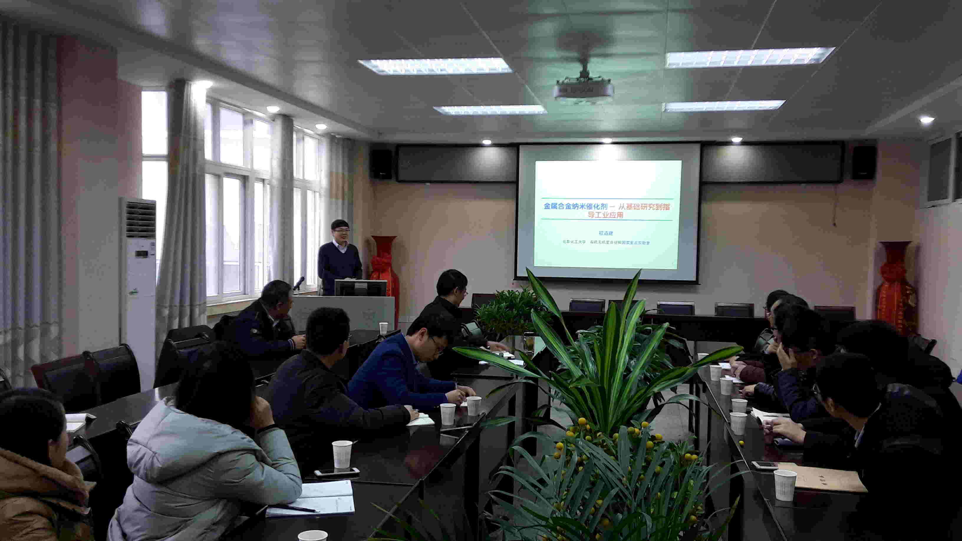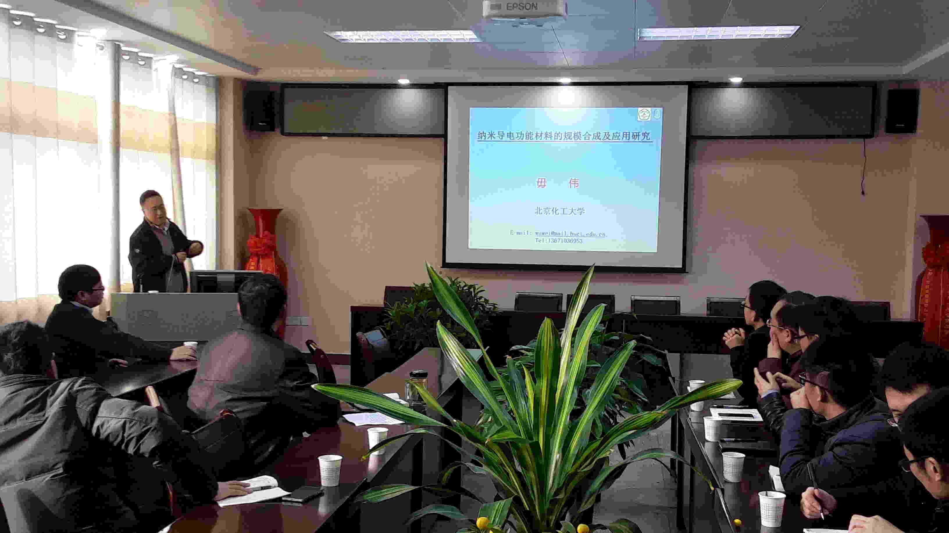 2016年12月30日上午,应太阳成tyc122cc集团邀请,北京化工大学程道建、毋伟教授来公司讲学,学术报告会由非金属材料研究所刘鹏副所长主持,太阳成tyc122cc集团部分教师和研究生参加。程道建教授作了题为“金属合金纳米催化剂:从基础研究到指导工业应用”的学术报告。报告围绕金属合金催化剂的分子模拟、制备表征、反应机理、催化性能和工业应用,详细介绍了合金催化剂研究方法,及其在清洁能源催化、环保和石油化工催化等领域的应用。 毋伟教授作了题为“导电纳米功能材料的规模合成及应用”的学术报告。介绍了采用超重力技术制备高性能纳米聚苯胺纤维、纳米聚苯胺纤维复合材料和石墨烯等导电功能材料,以及超重力旋转床平台技术的工业应用前景。12月30日下午,在省重点实验室会议室,程道建教授和毋伟教授对国家自然科学基金申报进行了指导,分享了自己多年申报国家基金的经验和体会,并对部分教师的申请书进行了详细的点评。