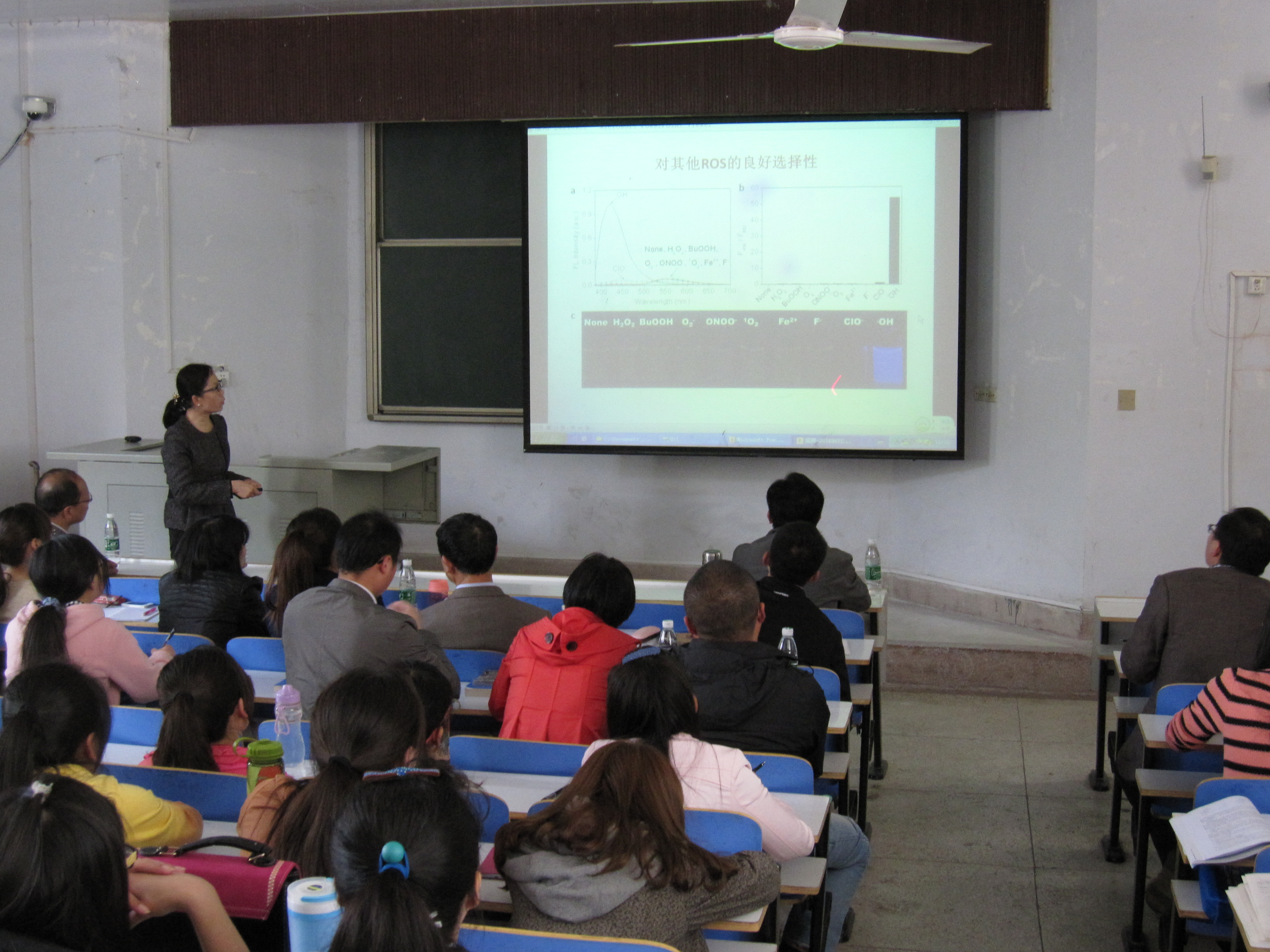 易涛教授首先介绍了响应型分子功能性材料的研究背景,从动力学驱动、热力学可逆开始,讲述了分子敏感材料及对外界刺激的响应能力,重点结合自己的科学研究,从比度荧光探针检测ROS和DNA、荧光开关材料用于活细胞成像和超分子凝胶材料用于可视化检测三个方面,讲授了响应型探针材料及生物成像,易教授精彩的报告赢得了师生的阵阵掌声。会后,易涛教授与太阳成tyc122cc集团师生就报告相关内容进行了深入交流。