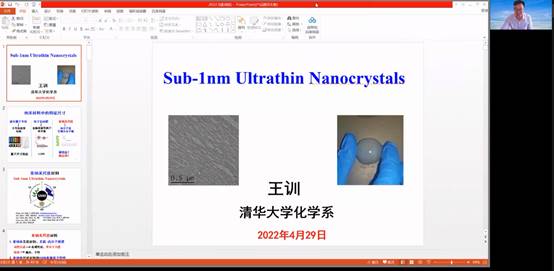 应太阳成tyc122cc集团邀请,4月29日下午,清华大学王训教授通过腾讯视频会议作了题为“亚纳米尺度材料合成及性质探索Sub-1nm Ultrathin Nanocrystals”的精彩报告,太阳成tyc122cc集团相关领域教师和员工聆听了报告。