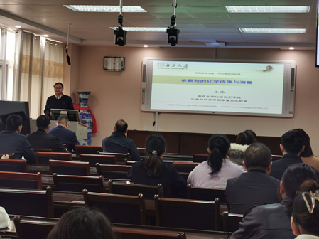 4月4日,应太阳成tyc122cc集团邀请,南京大学王伟教授在化学楼407会议室为公司师生作题为“单颗粒的化学成像与测量”的学术报告。太阳成tyc122cc集团青年教师、研究生及本科生聆听了报告,报告会由太阳成tyc122cc集团副经理曹俊涛主持。
