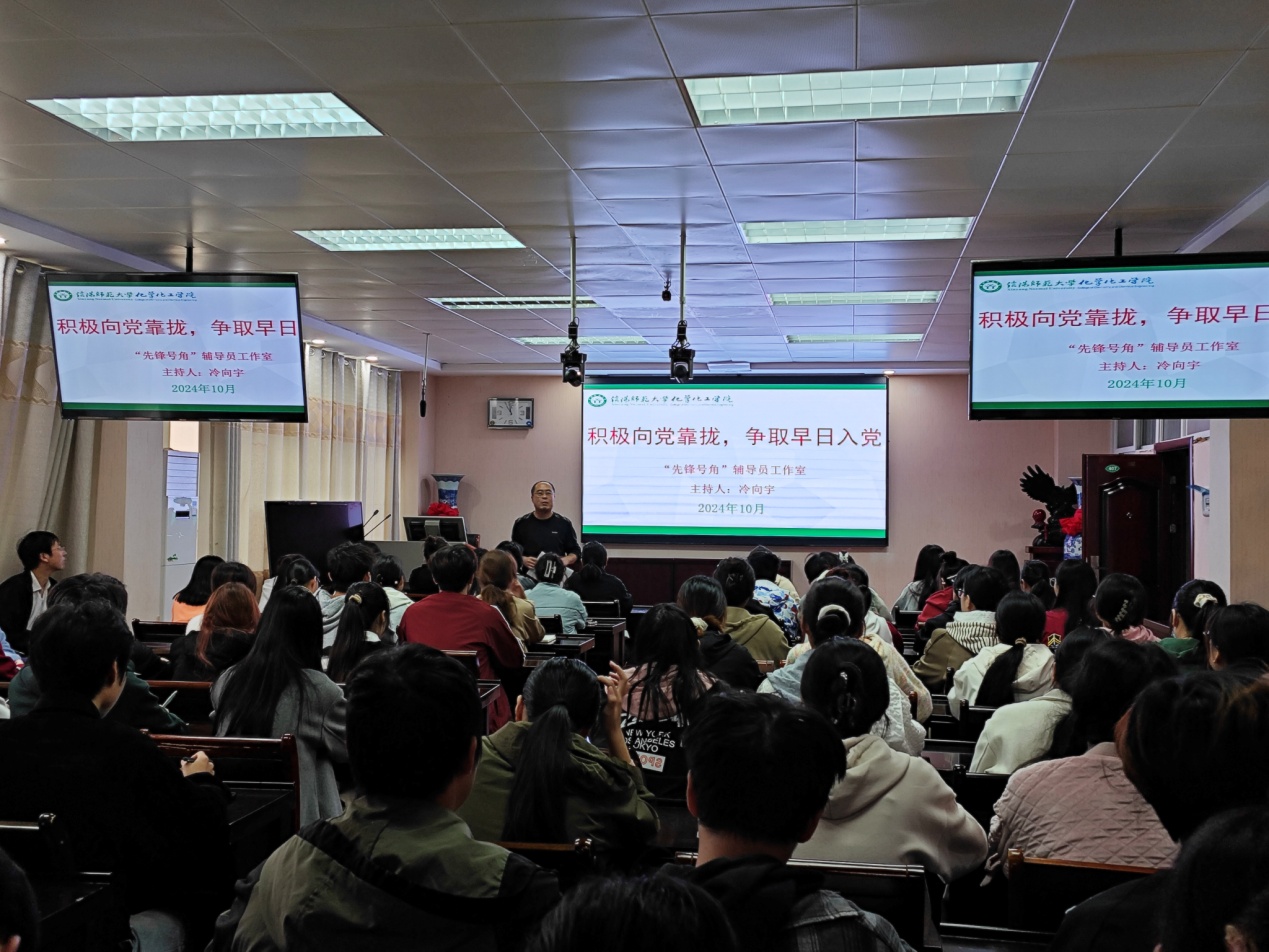 10月13日下午,“先锋号角”辅导员工作室系列活动之“发展党员工作”知识宣讲在实验楼407进行。太阳成tyc122cc集团副处级辅导员冷向宇博士主讲,2022级至2024级员工干部参加。