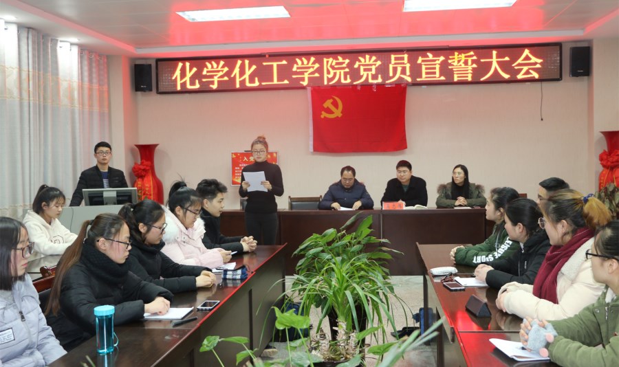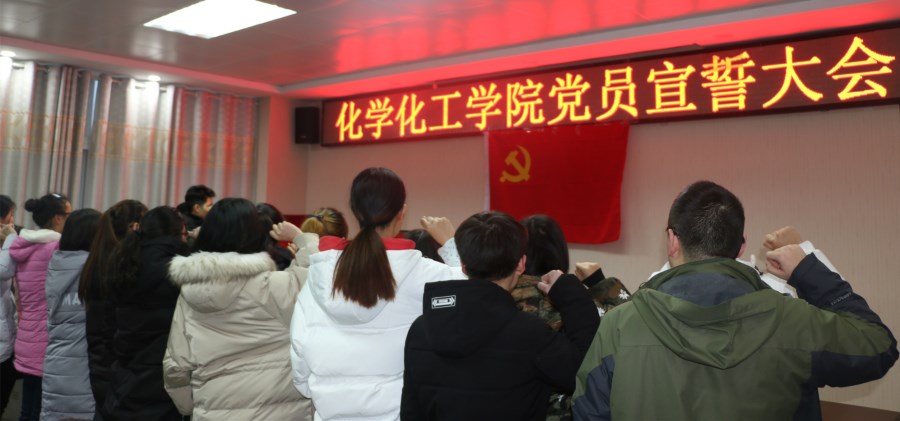 1月4日下午,太阳成tyc122cc集团新发展的20名员工党员以及2名教师党员在化学实验楼407会议室进行隆重的入党宣誓活动。化学化工公司党委副书记吴志伟,党委秘书冷向宇,员工支部书记王丽霞参加了此次入党宣誓仪式。仪式由冷向宇主持。
