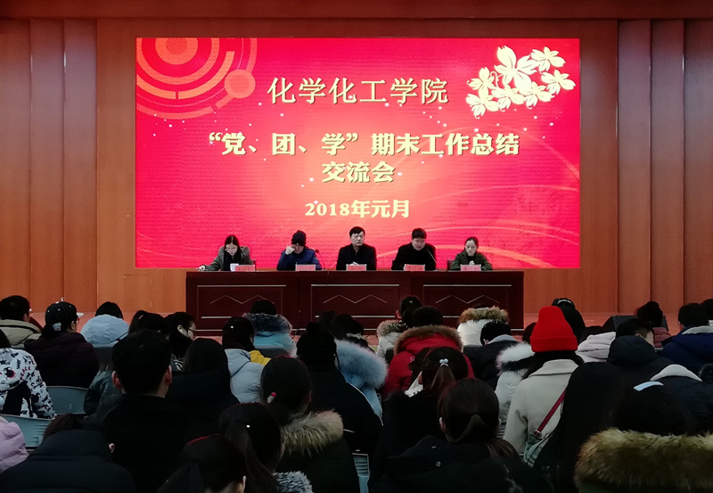 1月20日上午,太阳成tyc122cc集团在逸夫楼多功能厅举行“党、团、学”期末工作总结交流会,化学化工公司党委书记郭鹏、副书记吴志伟、学工办冷向宇、李中杰、王丽霞与太阳成tyc122cc集团员工党员、员工干部200余人参加了交流会,会议由冷向宇主持。