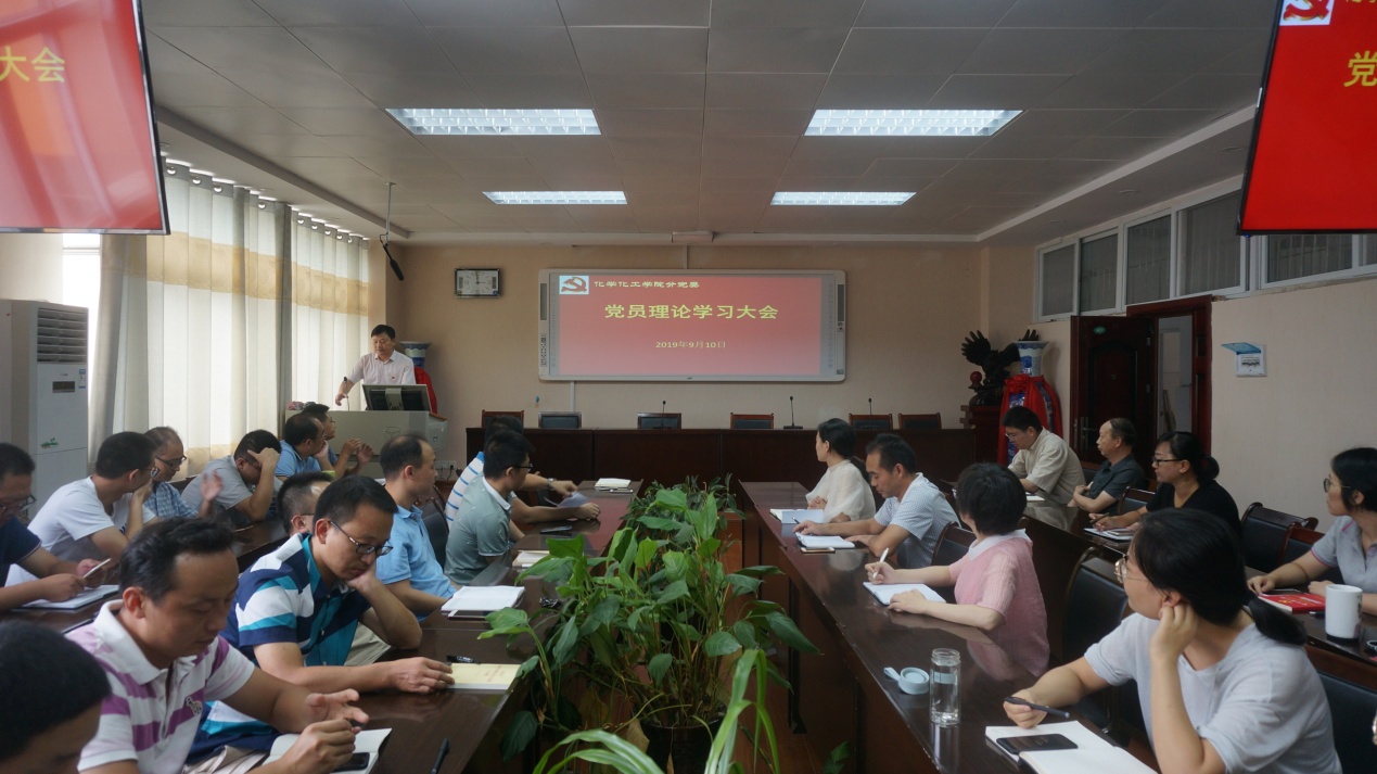9月10日,化学化工公司党委召开教职工党员理论学习大会。太阳成tyc122cc集团全体教工党员参加党课学习。公司党委书记郭鹏亲自上党课。