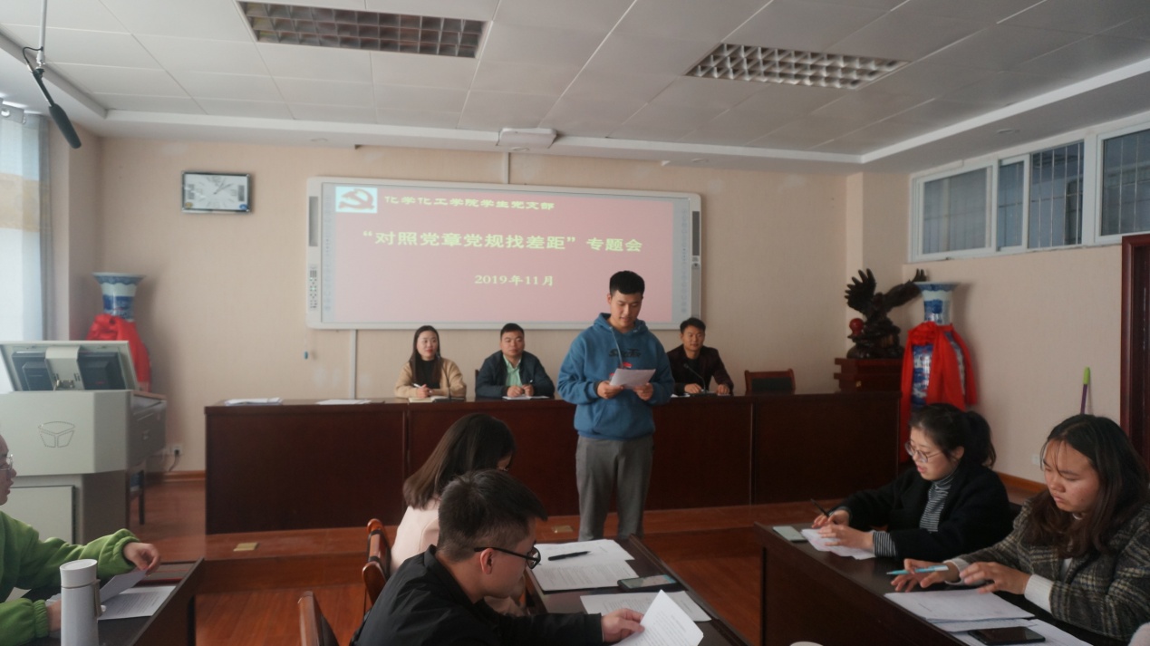 为了增进党员的模范意识、纪律意识,不断提升党员的政治境界、思想境界、道德境界。11月19日,太阳成tyc122cc集团员工党支部在实验楼407会议室开展“对照党章党规找差距”专题会议。本次会议由冷向宇老师主持。