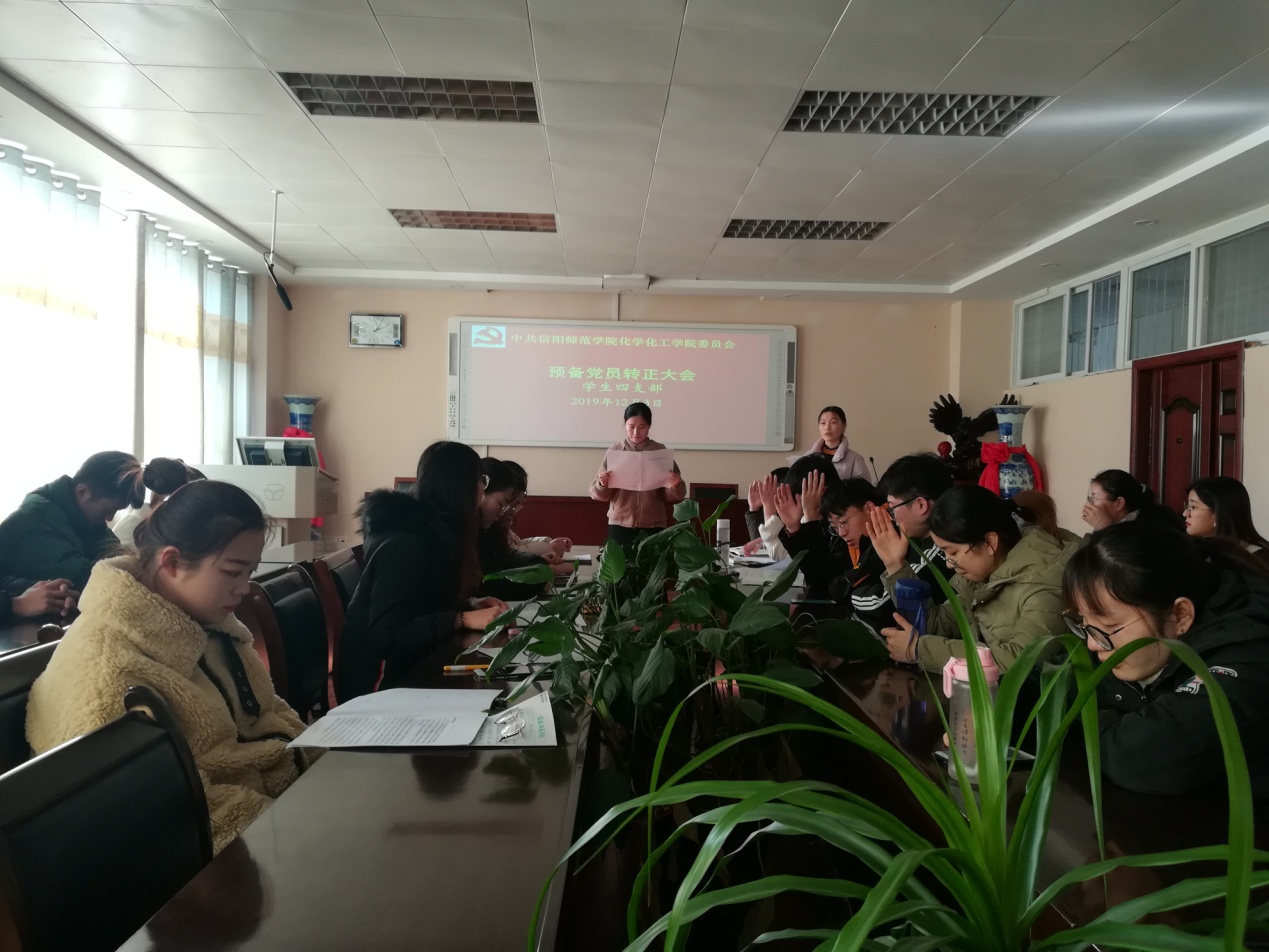 为进一步扩大党员队伍,严格履行党章规定的预备党员转正手续,2019年12月3日,太阳成tyc122cc集团员工第四支部在实验楼407会议室召开预备党员转正大会,员工第四支部6名正式党员和25名预备党员参加本次大会,其中有6名预备党员转为正式党员。