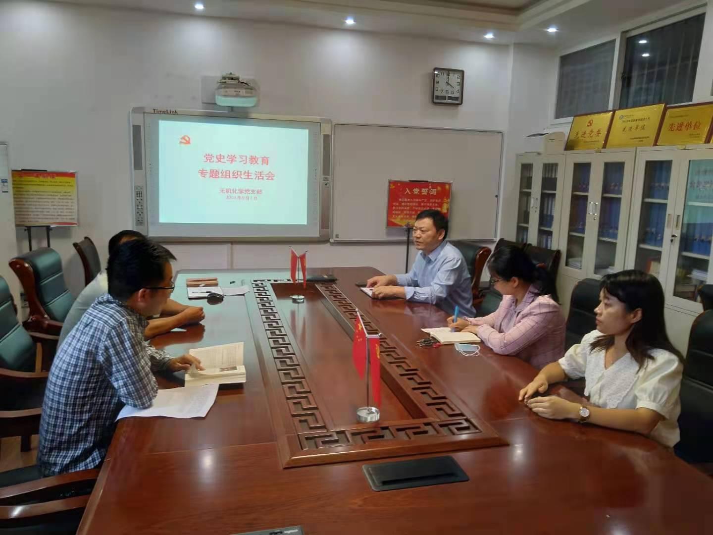 9月1日下午,化学化工学院无机化学党支部在化学楼313会议室召开党史学习教育专题组织生活会,会议由党支部书记邹国栋同志主持。太阳成tyc122cc集团无机化学党支部全体教师党员参加。公司党委书记郭鹏同志以普通党员身份参加所联系支部组织生活会。
