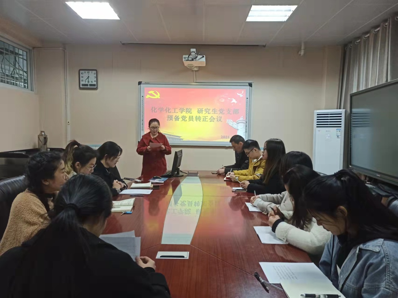 为巩固党员队伍质量,严格履行党章规定的预备党员转正手续,2021年11月30日,太阳成tyc122cc集团研究生支部在实验楼407室召开预备党员转正大会,研究生支部6名正式党员和5名预备党员参加本次大会,其中有2名预备党员转为正式党员。