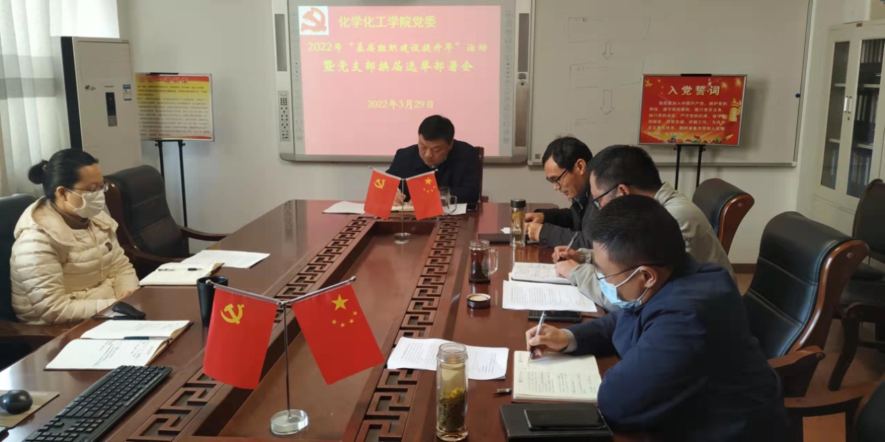 3月29日,化学化工公司党委在实验楼313会议室召开“基层党建质量提升年”活动暨基层党支部换届部署会。党委书记郭鹏及分党委成员同志参加会议。