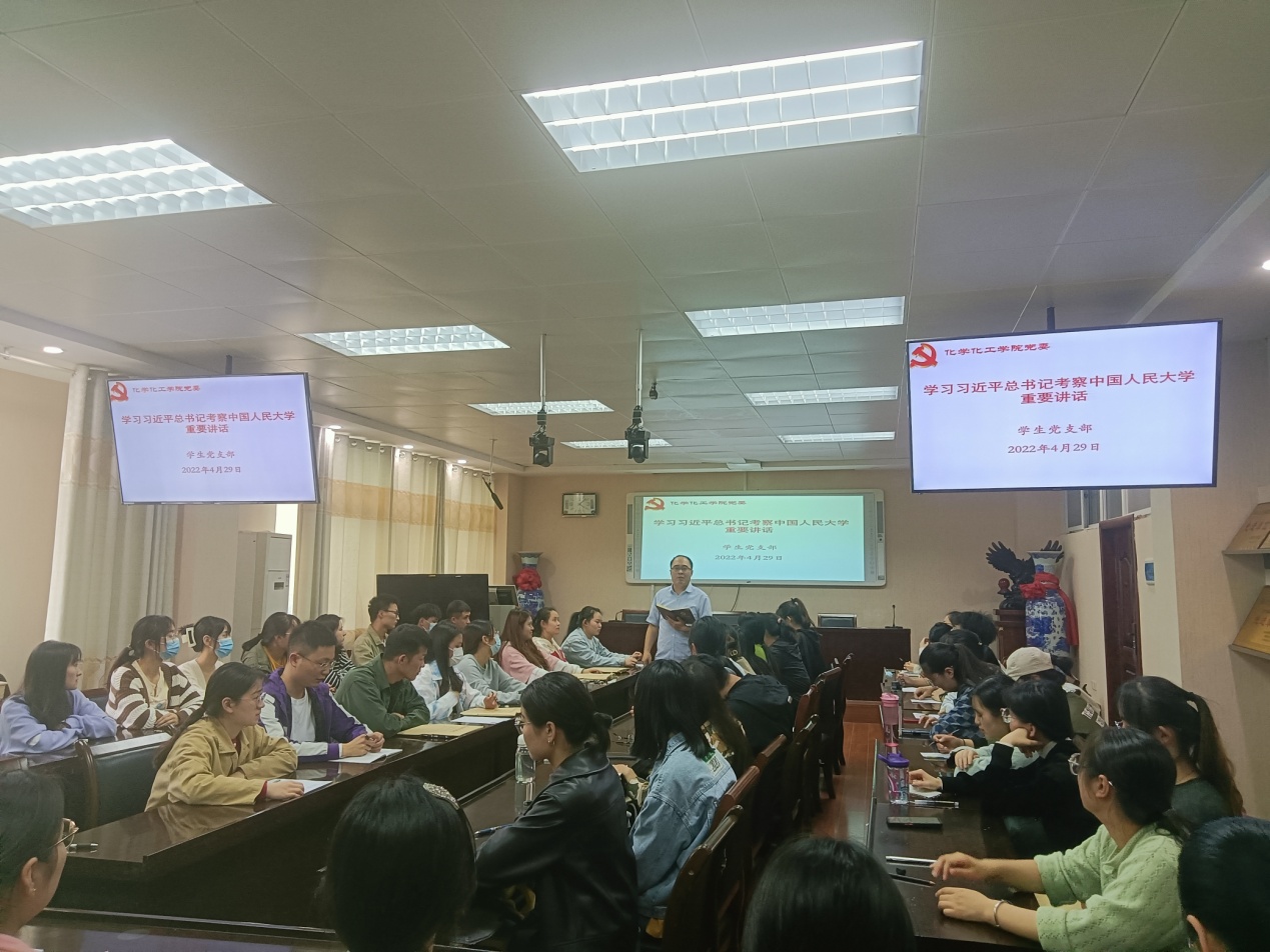 冷向宇结合个人学习习近平总书记考察调研中国人民大学重要讲话精神情况分享了学习心得,要求同学们谨记总书记的殷切嘱托,争做有理想、有本领、有担当的新时代青年,为实现中华民族伟大复兴,建设社会主义现代化强国贡献自己的青春热血。