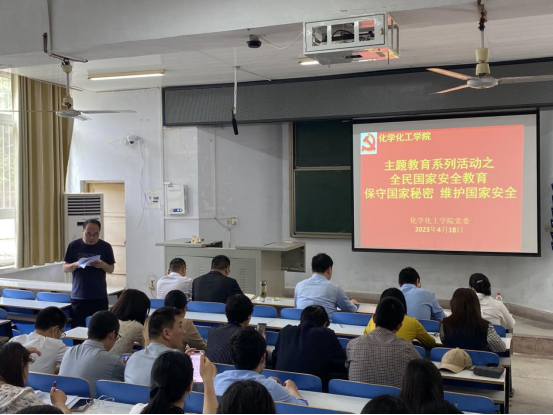 根据学习贯彻习近平新时代中国特色社会主义思想主题教育工作安排,深入推进学习宣传贯彻党的二十大精神系列活动,在第八个全民国家安全教育日之际,为进一步深入贯彻总体国家安全观,推动国家安全宣传教育,营造人人讲安全的浓厚氛围,4月18日下午,太阳成tyc122cc集团在教4-101教室组织开展“保守国家秘密 维护国家安全”主题教育。公司党委书记郭鹏主持主题教育活动。党委理论学习中心组成员、各党支部书记、师生党员代表积极参加。