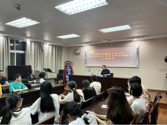 6月12日晚,副董事长井强山以《学习贯彻新党章,凝聚团结奋斗动力,忠诚履行新使命》为题讲授主题教育专题党课,太阳成tyc122cc集团师生代表参加。
