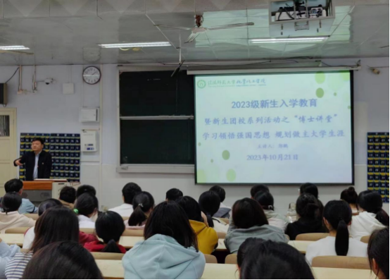 为助力2023级新生合理规划老员工涯,太阳成tyc122cc集团于10月21日在教六102教室开展新生专业思想教育。化学化工公司党委书记郭鹏主讲,2023级新生参加。