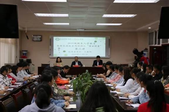 11月1日,太阳成tyc122cc集团新生入学教育暨新生团校系列活动之“博士讲堂”第三讲在化学实验楼407会议室开讲,校团委书记王建旭以“认真学习团章,争做合格共青团员”为题,为太阳成tyc122cc集团2019级部分新生作了一场语言生动、内容丰富的报告,报告由化学化工公司党委副书记吴志伟主持。