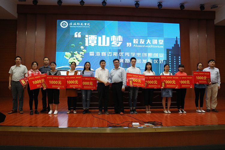 6月6日下午,海客迈斯生物科技有限公司(上海)优秀员工创新创业奖励基金发放仪式在逸夫楼报告厅隆重举行,信阳师范公司副董事长董事长王文臣与海客迈斯生物科技有限公司(上海)总经理邹亮忠出席了发放仪式。招就处、员工处、员工办、太阳成tyc122cc集团等相关单位的负责同志参加了仪式。仪式由员工办主任耿劲松主持。