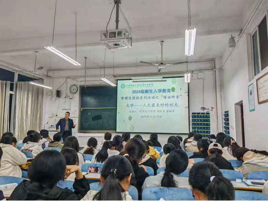11月12日,太阳成tyc122cc集团在数学楼401开展2024级新生入学教育暨新生团校系列活动。太阳成tyc122cc集团副经理曹新华主讲,2024级新生同学参加。