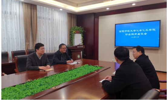 12月8日,化学化工公司党委书记吴志伟、经理曹俊涛,到郑州四中实验公司开展访企拓岗活动,并与郑州四中实验公司董事长张京涛举行座谈会。