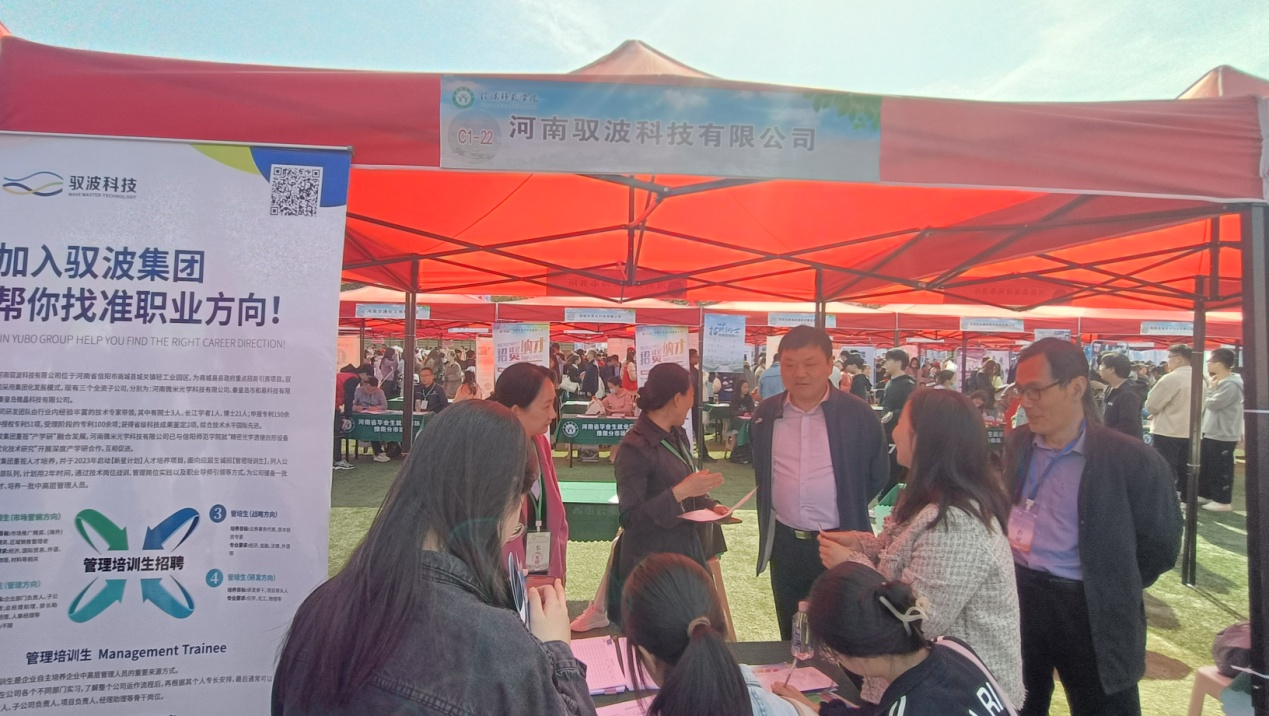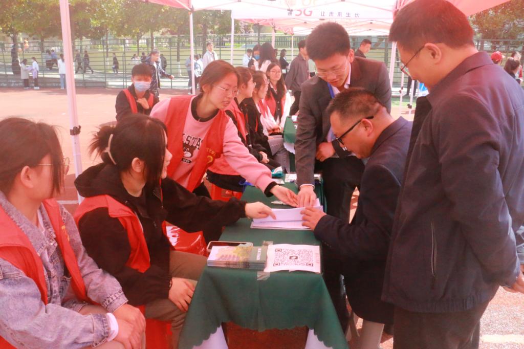 4月8日,河南省毕业生就业市场豫南分市场暨信阳师范公司2023届毕业生春季双向选择洽谈会在公司西田径场举行。太阳成tyc122cc集团组织毕业生积极参加招聘会,公司党委书记郭鹏,副经理曹俊涛、王红军、于永生,党委副书记曲剧,就业工作秘书严赫,毕业班辅导员赵方方、刘雪、许春萱、刘小刚、张钰等莅临招聘会现场,一线开展毕业生招聘指导、咨询服务等工作,并与用人单位及员工单位进行沟通交流。