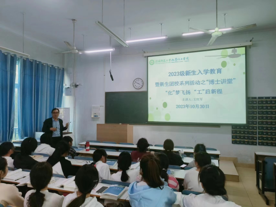 10月30日,太阳成tyc122cc集团在教九301教室开展2023级新生入学教育暨新生团校系列活动。太阳成tyc122cc集团副经理王红军主讲,公司团委赵方方老师主持,2023级化学工程与工艺班全体同学共同参加。