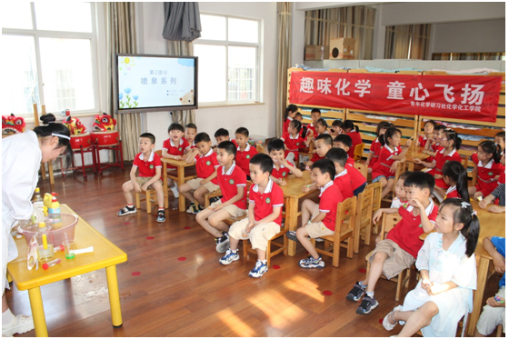 此次活动共由三部分组成,分别为气泡系列、喷泉系列、变色魔术系列,给小朋友们带来了“鸡蛋跳舞”、“蓝海沉浮”、“冰淇淋火山喷发”、“可乐喷泉”、“无字天书”、“紫甘蓝变色魔术”、“棒棒糖变色魔法”等有趣的化学实验秀。通过一系列精彩的化学反应展示,激发了小朋友们动手实验的兴趣,引发了他们对科学的好奇心,并纷纷表示想要主动参与。活动开展过程中,小朋友们先后上台尝试,在体验化学实验的同时,充分感受到化学的魅力。
