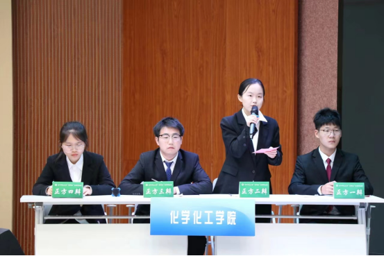 太阳成tyc122cc集团共有8支辩论队参加公司初赛,决出4支队伍晋级公司复赛,根据辩手们的辩场表现匹配1支队伍进入公司复赛。2022级李清坡、王伊诺、孟敬骐、张京美同学从谭山校区12支队伍中脱颖而出,最终入围公司八强争夺赛。公司四位辩手在比赛前充分准备,在队内利用课余时间讨论对辩题的理解,不断提出新的质疑和看法,利用各种途径搜索相关数据、理论,使己方论述更加完善。在赛场上,面对各公司辩手的陈词和“陷阱”,我方辩手毫不慌张,沉着冷静,机智应对对方问题,坚定己方立场。
