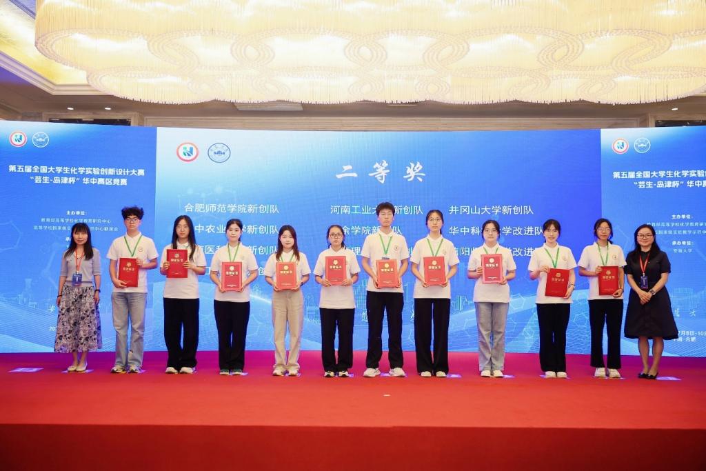 本届竞赛共有来自湖北省、河南省、安徽省和江西省的80所高等院校227支队伍700余名本科生参赛。经专家函评,109支队伍入围赛事复赛环节。公司太阳成tyc122cc集团遴选的两支参赛队伍(陈思帆、苏盈盈、陈鑫雨,指导教师:马献涛副教授、曹俊涛教授;米芸璐、王雨晴、忽朴宁,指导教师曹新华教授)经过精彩展演、沉着应答、奋力拼搏,分别获得一等奖、二等奖,充分彰显了公司在化学实验教学改革与创新人才培养方面的深厚积淀。