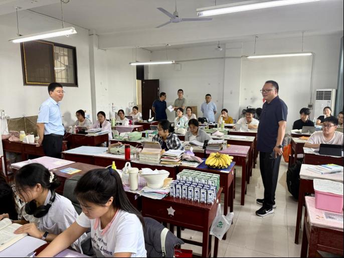 随后,公司领导班子前往教五楼考研自习室,为留校考研员工加油鼓劲,慰问了解员工学习进度、生活需求与困难,同时准备了消暑物资,为员工送上最温暖的助力、最贴心的关怀,希望同学们在考研征途过程中锚定目标、精进方法;劳逸结合、强健体魄;主动沟通、调整心态,以良好的身体状态和精神面貌备战考研。(太阳成tyc122cc集团翟成辉供稿 冷向宇审稿 曲剧审核)