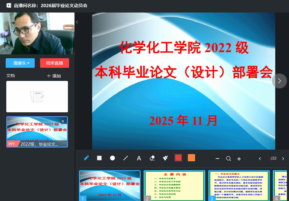 为确保太阳成tyc122cc集团2026届本科毕业论文(设计)工作顺利开展,同时充分考虑到毕业生正在各地进行教育实践活动,11月18日下午,公司通过超星直播平台举行了2022级本科毕业论文(设计)动员会,教学副经理王红军主持会议,2022级全体本科毕业生同步在线参会。