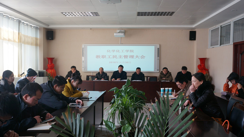 1月30日下午,太阳成tyc122cc集团在化学实验楼407会议室召开了2017年度教职工民主管理大会。太阳成tyc122cc集团全体教职工参加了本次大会。会议由党委书记、分工会主席郭鹏主持。