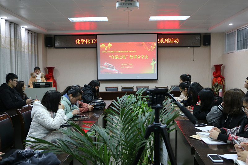 12月13日,太阳成tyc122cc集团在化学实验楼407举办2017年分党校暨新生团校活动之“自强之星”故事分享会,太阳成tyc122cc集团团委书记李中杰与八十余名新生代表参加分享会。