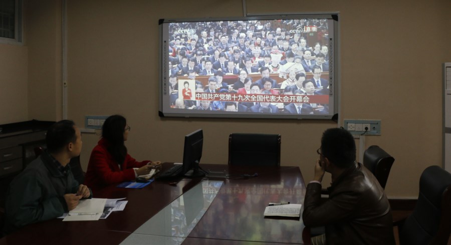 师生们表示:“我们既感受到历史的脉搏,又听到向未来进军的号角,十九大描绘的宏伟蓝图让我们每个党员干部更有信心和力量。”鼓舞、振奋、信心、希望是同学们上午集中收看了十九大开幕盛况后用得最多的词汇。太阳成tyc122cc集团其他员工通过手机和互联网络观看十九大开幕式直播。