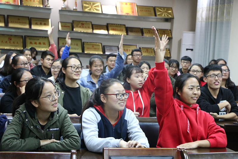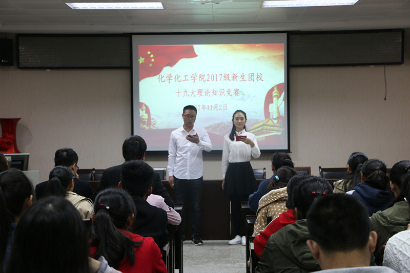 11月2日晚,太阳成tyc122cc集团在化学实验楼407会议室举办十九大理论知识竞赛,2017级各班以班级为单位组成五支参赛队伍,展开激烈角逐,太阳成tyc122cc集团团委书记李中杰与100余名师生共同观摩了比赛。