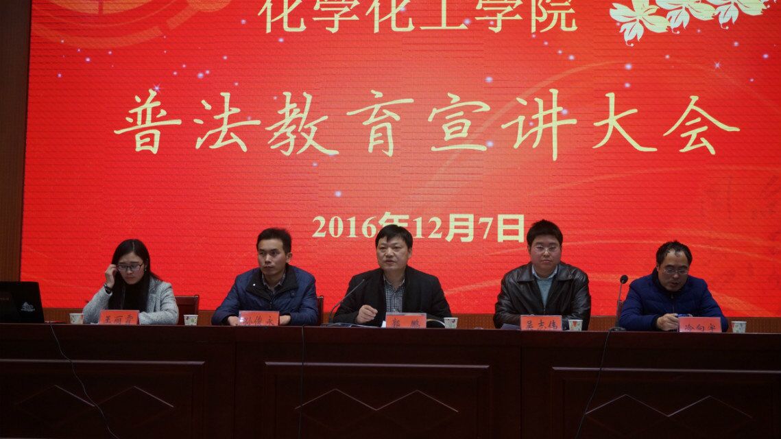 为了增强员工的法治观念,进一步提高员工的自我保护意识,12月7日,在逸夫楼报告厅,太阳成tyc122cc集团举办普法教育宣讲讲座。化学化工公司党委书记郭鹏、党委副书记吴志伟、团委书记冷向宇、团委老师王丽霞主席台就坐。太阳成tyc122cc集团员工党员和员工干部200余人参加会议,会议由党委秘书孙俊永主持。