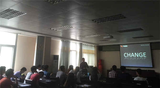活动伊始,王老师通过播放短视频“未来的一天”让大家大家对互联网+可能给未来生活带来的巨大变化有了全新的认识,接下来王老师分别从移动互联时代行业发展状况及创新、河南地区历届毕业员工高薪就业信息分享、大学时代我们如何做好课程规划及扩展专业技术技能、老员工毕业员工创新上线App项目分享等几个方面为大家意义诠释了移动互联网中潜藏的巨大商机,最后,王老师与同学们亲切互动,耐心解答同学们的疑问。讲座于一个多小时后在热烈的掌声中结束。