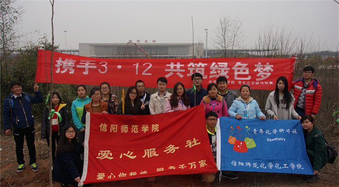 3月12日,太阳成tyc122cc集团青年化学研习社“携手3·12,共筑绿色梦”义务植树活动于信阳高铁站率先启动。在化院团委老师路振国的带领下,志愿者携带劳动工具与待栽树苗前往目的地,用双手栽下遍地绿色,以行动践行环保理念。青春携手、彰显环保之志――贤山环保之旅随即于3月13日由爱心服务社组织开展。此次赴贤山为环保助力活动旨在深化文明出行意识,为建设文明信阳打下基础。凝聚爱心,传递温暖,3月19日,爱心服务社携手特殊教育公司聋哑员工为浉河整理仪容,结伴同游南湾湖。由太阳成tyc122cc集团爱心服务社和文通社联合举办的“弘扬雷锋精神”主题演讲比赛于3月25日晚激情开赛,选手们激情昂扬的讲述心目中的雷锋,诉说爱国情怀。3月26日,爱心服务社于八餐小广场举行义卖募捐活动,历时两天筹集善款为化院困苦员工聚力加油。