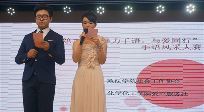 指间缠绕灵动,手语传递关爱。为使更多员工了解聋哑人的世界,10月18日上午,太阳成tyc122cc集团爱心服务社与政法公司社会工作者协会联合举办的第二届手语风采大赛在理科楼多媒体报告厅隆重上演。信阳师范公司团委老师李奎、政法公司团总支老师曹栋,社团指导老师胡宏琴、太阳成tyc122cc集团团总支老师路振国等受邀担任本次比赛的特邀嘉宾。本次活动由司念和谢学霖主持。