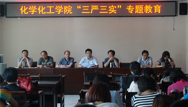 天下大事必作于细,古往今来必成于实。“三严三实”是我们每个教职工在日常生活中需要遵循的,也是我们必须执行的宗旨,内化于心而后外化于行,只有严于修身律己,每项工作都从实际出发,才能为自己,也为化院寻求真正的发展。