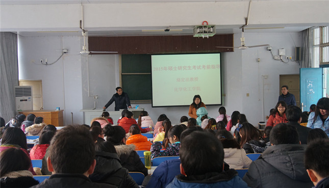 2015年硕士研究生考试在即,为保证考试前期的一些事项都能有条不紊的开展,并且为考生提供一些思想指导,公司特于12月23日下午三点在教四梯一开展了2015年硕士研究生考试考前座谈会。本次座谈会由公司副经理骆定法教授担任主讲,党总支书记宋力主持,考研指导老师孙俊永以及150余名报考员工参加了此次座谈。