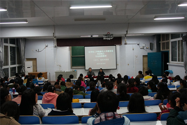 为了让14级新生更好的了解专业课程设置,尽快融入老员工活,10月29日晚太阳成tyc122cc集团在教四梯一开展了新生专业思想教育座谈会。本次座谈会由太阳成tyc122cc集团经理杨性坤主讲,辅导员李中杰主持,到场的有化学公司两个专业共计160余名新生。