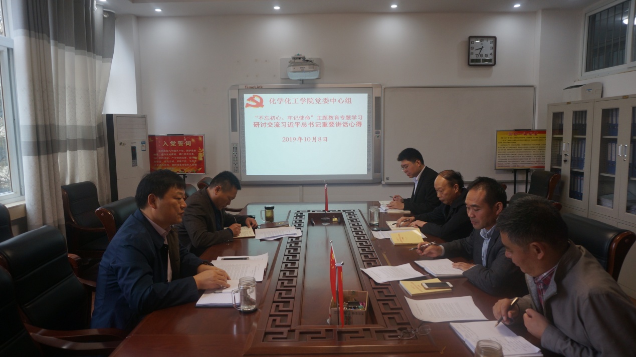 108日,公司分党委理论中心组在实验楼“党员之家”集体学习研讨习近平总书记在庆祝中华人民共和国成立70周年大会上的讲话精神。分党委书记郭鹏主持学习并讲话,中心组成员井强山、归风铁、骆定法、刘鹏、吴志伟参加学习并交流心得体会。