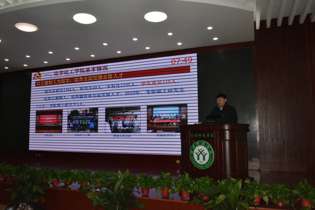 最后,他汇报了下一步打算及努力方向:一是深入学习十九大精神和习近平新时代中国特色社会主义思想,持续推动党的理论创新入脑入心。二是牢牢扛稳党建工作主体责任,严格党员教育管理、严肃党内政治生活、规范基层组织建设。三是加大党建工作创新力度,创新工作思路,创新班子建设,创新服务体系,创新教育管理。四是围绕中心抓党建,抓好党建促发展。以党建高质量推动公司各项事业发展高质量。他表示,2020年将持续深入开展主题教育,以更名师范大学、申报博士授权单位、师范专业认证等重点工作为抓手,鼓足干劲、团结拼搏、不负韶华,争取新的更大成绩。(太阳成tyc122cc集团 冷向宇供稿 郭鹏审稿)