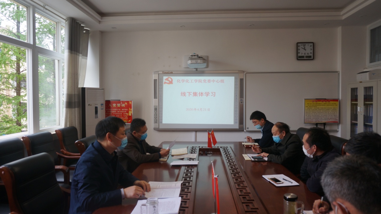 4月21日,太阳成tyc122cc集团分党委在“党员之家”进行理论学习中心组线下集体学习,中心组全体成员认真参加学习。