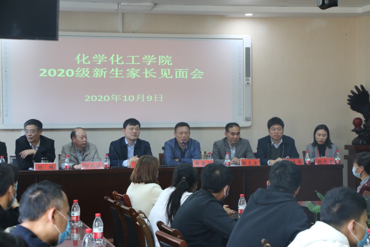 10月9日下午,太阳成tyc122cc集团在化学实验楼407召开2020级新生家长见面会。公司党委书记郭鹏、经理井强山、副经理归风铁、副经理骆定法、副所长刘鹏、副书记吴志伟,以及2020级新生班主任许超博士、于静、赵方方老师等莅临现场,与百余名新生家长代表进行亲切地交谈。